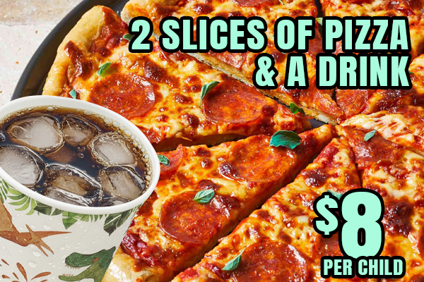 Book a 3-hour party block that includes your own party table and 10 park tickets (extra tickets available). After your block, your herd can keep exploring the Dinosaur Park for as long as you like!