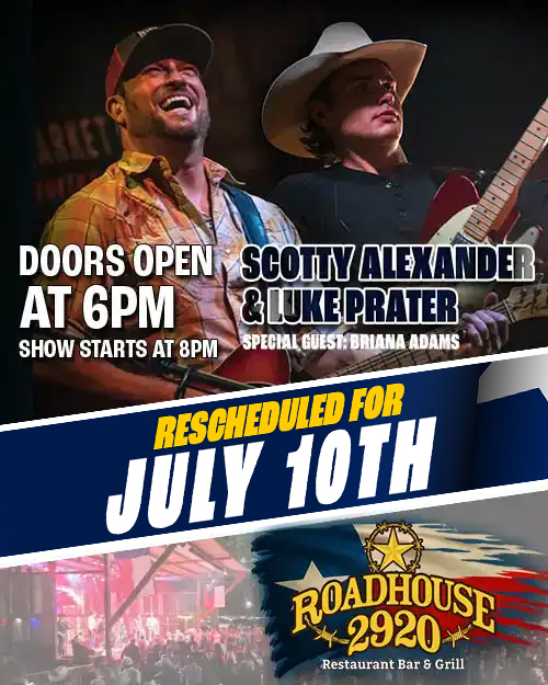 Briana - 7:30 - 8:00 (opener)Luke - 8:15 - 9:15 (1st headliner)Scotty - 9:30 - 10:30 (2nd headliner)